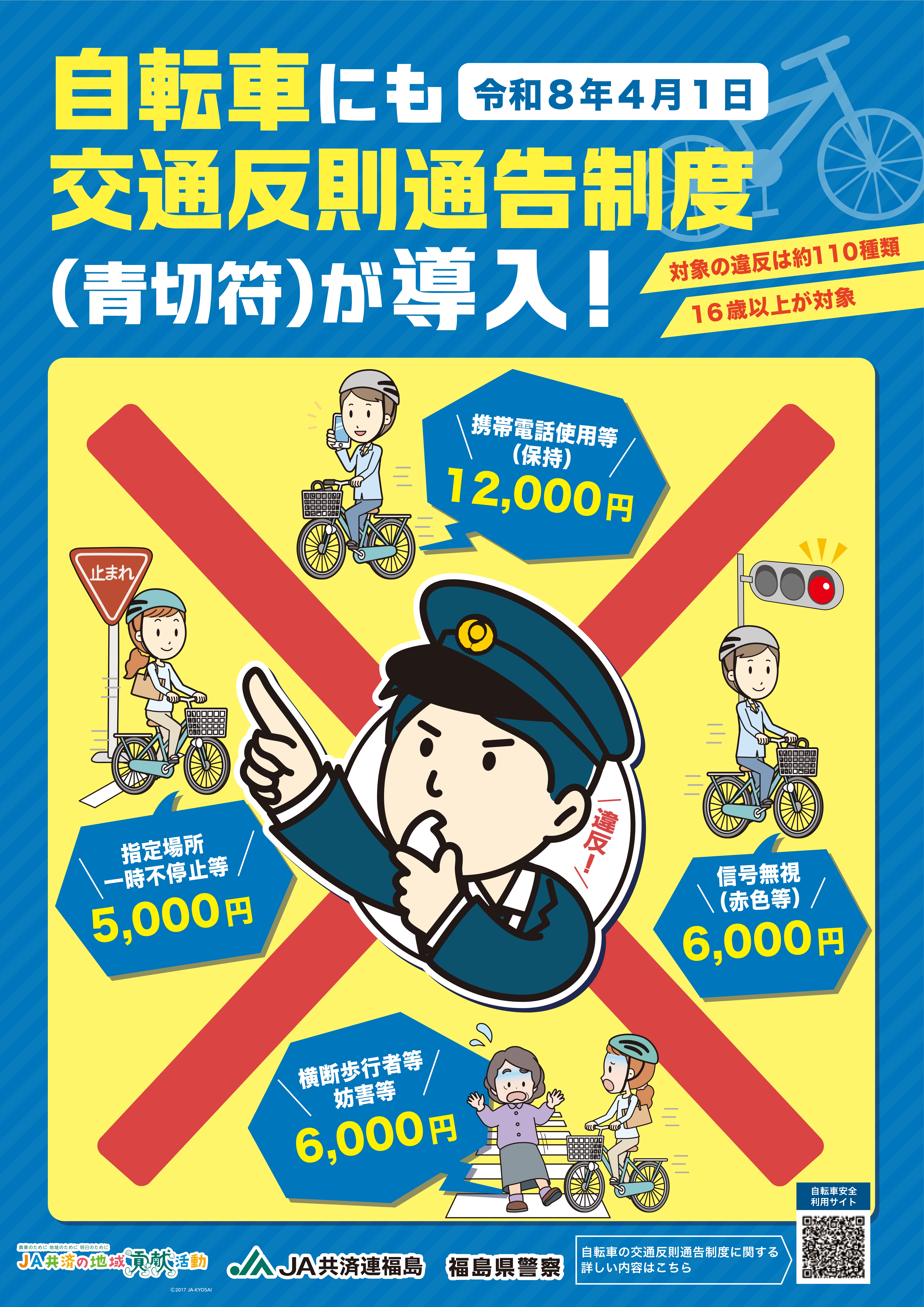 自転車の交通違反に対する交通反則通告制度(青切符)