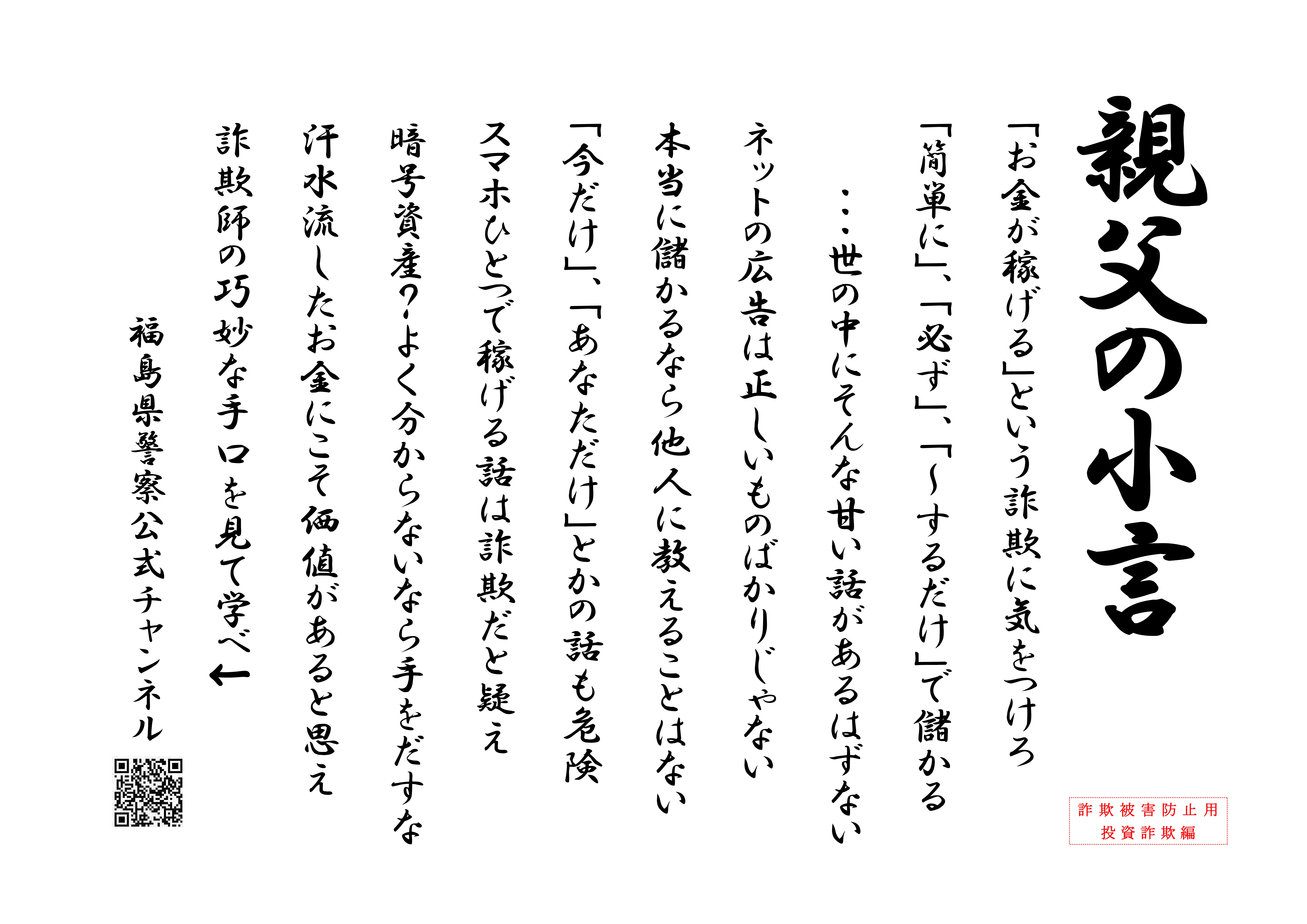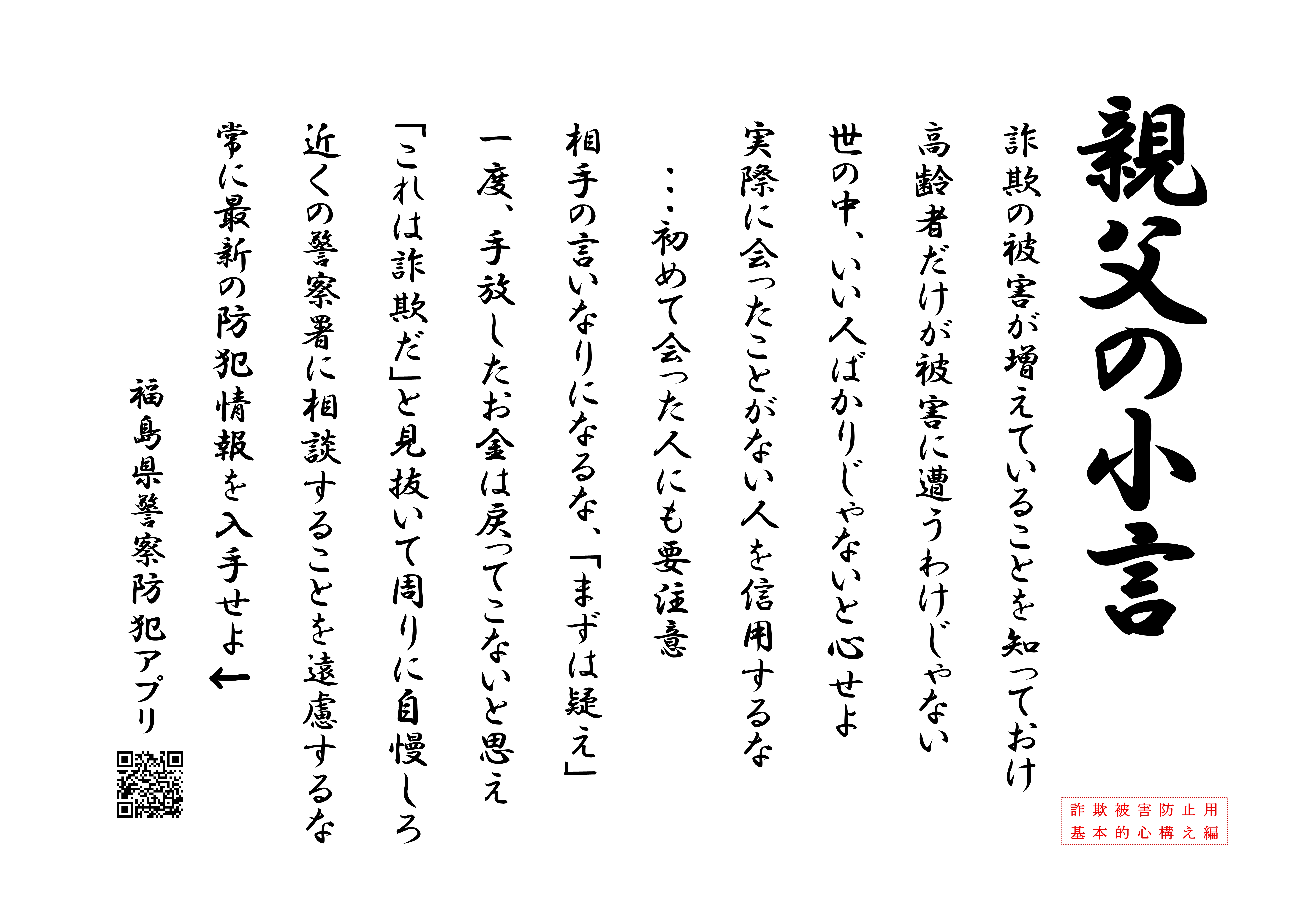福島県警では、詐欺被害に遭わないための基本的な注意点を